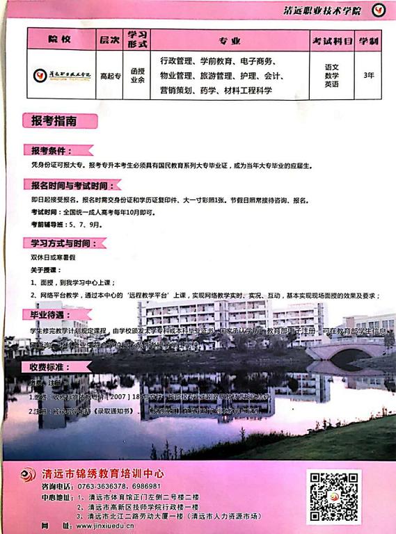 共青團(tuán)清遠(yuǎn)市委員會2017年圓夢計劃正式啟動!【北京大學(xué)圓夢計劃,圓你大學(xué)夢】成人本科:北京大學(xué)(網(wǎng)絡(luò)教育)符合條件者3年共交學(xué)費(fèi)2000元,?疲呵暹h(yuǎn)職業(yè)技術(shù)學(xué)院(成人函授),符合條件者3年共交學(xué)費(fèi)1000元,就能完成學(xué)業(yè),輕松拿證!另外,企業(yè)人力資源管理師職業(yè)資格考證、叉車上崗證考證等現(xiàn)火熱接受報名中,歡迎有志提升自己的朋友咨詢報名。咨詢熱線:成老師0763-3630112  15816286696微信同步 報名地址:清遠(yuǎn)市北江二路勞動大廈一樓
