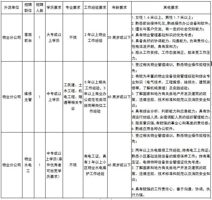 清遠市弘力勞務有限公司以“專注人才服務,專業(yè)服務人才”為企業(yè)宗旨,力求為企業(yè)及求職者提供專業(yè)、高效的人才服務平臺,F(xiàn)因公司業(yè)務發(fā)展需要,按照公開、平等、競爭、擇優(yōu)的原則誠聘客服前臺、維修主管和物業(yè)水電工各一名外派到清遠市德晟公共資源管理有限公司物業(yè)管理服務分公司。