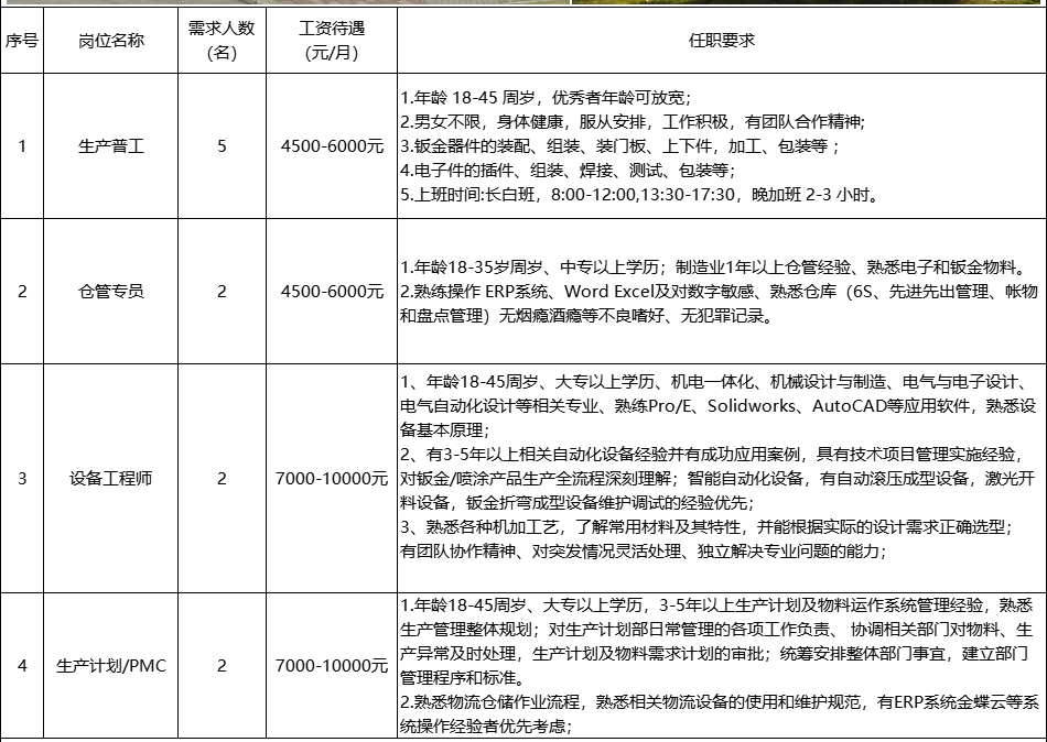 廣東日昕精密制造有限公司誠聘