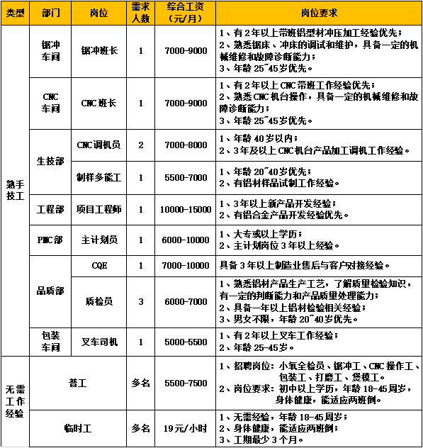 因生產(chǎn)發(fā)展需要,誠聘以下崗位