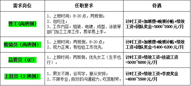 1、食宿:公司免費(fèi)提供食宿,宿舍內(nèi)配有床、空調(diào)、風(fēng)扇、24小時(shí)熱水供應(yīng)等;